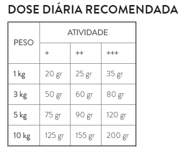 INGREDIENTES Salmão (18%), milho, proteínas de milho, arroz (14%), proteínas de salmão desidratado, gordura animal,estabilizada com tocoferóis mistos de origem natural, farinha de milho, aromatizantes hipoalergénicos, polpa de beterraba, fibra vegetal, cloreto de potássio, fruto-oligossacáridos, sal, polifenóis naturais(0.01%) ADITIVOS NUTRICIONAIS VitaminaA 27000 UI VitaminaD3 1800 UI VitaminaE 500 mg VitaminaC 70 mg Biotina 0.3 mg Sulfato ferroso mono-hidratado 260 mg (Fe: 86mg) Iodeto de potássio 1.9 mg (I: 1.4 mg) Sulfato de cobre penta-hidratado 33mg (Cu: 8.8 mg) Sulfato de manganês mono-hidratado 123mg (Mn: 40 mg) Sulfato de zinco mono-hidratado 407mg (Zn: 148mg) Selenito de sódio 0.2mg (Se: 0.1mg) Com antioxidantes naturais. COMPONENTES ANALÍTICOS 27.0% Proteína 18.0% Matéria gorda bruta 2.0% Fibra bruta 6.5% Matéria inorgânica 0.7% Ómega- 3 2.5% Ómega- 6