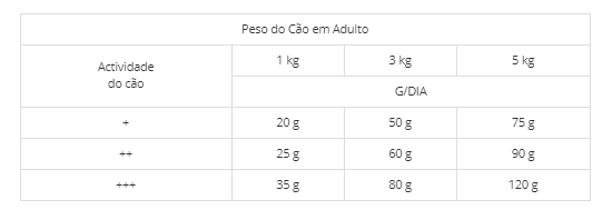 INGREDIENTES Frango (19%), arroz (15%), proteínas desidratadas de aves, milho, proteínas de milho, gordura animal,estabilizada com tocoferóis mistos de origem natural, proteínas animais hidrolizadas, trigo, polpa de beterraba, óleo de peixe, cloreto de potássio, fruto-oligossacáridos, proteínas plasmáticas,fonte natural de imunoglobulinas(0.4%), difosfato tetrassódico(0.29%), carbonato de cálcio, sal, presunto desidratado (0.05%), maçã desidratada (0.05%), chá verde (0.013%), polifenóis naturais(0.01%) ADITIVOS NUTRICIONAIS Vitamina A 27000 UI Vitamina D3 1800 UI Vitamina E 500 mg Vitamina C 70 mg Biotina 0.25mg Taurina 2100 mg Sulfato ferroso mono-hidratado 260 mg (Fe: 86 mg) Iodeto de potássio 1.9 mg (I: 1.4 mg) Sulfato de cobre penta-hidratado 33 mg (Cu: 8.8mg) Sulfato de manganês mono-hidratado 123mg (Mn: 40 mg) Sulfato de zinco mono-hidratado 407mg (Zn: 148mg) Selenito de sódio 0.2mg (Se: 0.1mg) Com antioxidantes naturais. COMPONENTES ANALÍTICOS 28.0% Proteína 18.0% Matéria gorda bruta 2.0% Fibra bruta 6.5% Matéria inorgânica 0.4% Ómega- 3 3.0% Ómega- 6