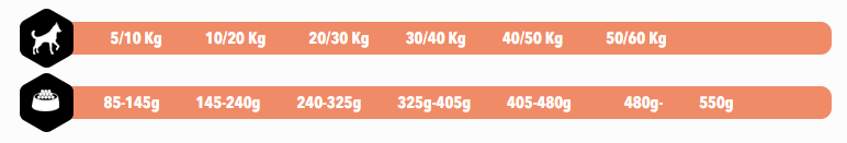 Composição: Proteína desidratada de carne (min. De frango 20%), cereais (arroz min. 20%), gordura de frango (min. 15%), proteína de peixe desidratada (min. 4%), subprodutos de origem vegetal, fermento ( Saccharomyces cerevisiae), substâncias minerais, extrato de levedura (fonte de manooligossacarídeos), chicória (fonte de frutooligossacarídeos), óleo de peixe (fonte de ômega 3). Componentes analíticos: Proteína 32,0%, Gordura 21,0%, Fibra bruta 1,5%, Matéria inorgânica 6,7%, Umidade 10,0%. Aditivos nutricionais: Vitamina A 28.000 UI / kg, Vitamina D-3 1.600 UI / kg, Vitamina E (d / α-acetato de tocoferila) 160 mg / kg, E1 / Ferro 200 mg / kg, E4 / Cobre 16 mg / kg, E5 / Manganês 16 mg / kg, E6 / Zinco 176 mg / kg, E2 / Iodo 2,8 mg / kg, E8 / Selênio 0,4 mg / kg. Antioxidantes e conservantes.