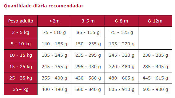 Carne desidratada de vaca e porco, cevada integral, trigo integral, carne desidratada de frango, gordura de ave, hemoglobina, arroz, polpa de beterraba, peixe desidratado, proteína hidrolisada de ave, lecitina, F.O.S., glucosamina, sulfato de condroitina, L-carnitina.