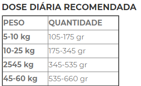 Carne Fresca de Aves (30%), proteína de aves desidratada, batata-doce, ovo fresco (8%), mandioca, gordura de aves, ervilha, hidrolisado de proteína de aves, polpa de beterraba (2%), proteína de sardinha desidratada, substâncias minerais (sulfato de glucosamina 500 mg/kg), azeite, maçã desidratada, cenoura desidratada, tomate desidratado, antioxidantes naturais (alecrim, groselha, romã), mexilhão verde desidratado (500 mg/kg), leveduras (fonte de MOS 450 mg/kg), Yucca schidigera (250 mg/kg).