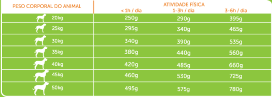 Proteína bruta 25%; Matéria gorda bruta 15%; Fibra bruta 5%; Cinza bruta 5,5%; Ácidos gordos Ómega-3 0,45%.