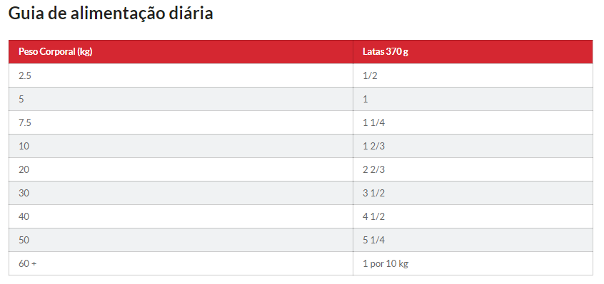 DICAS ÚTEIS ·Ajuste as quantidades diárias para manter o peso ideal. Em caso de dúvida, pergunte ao seu veterinário. ·É a primeira vez que utiliza este alimento? Misture quantidades o novo alimento com o alimento atual do seu do animal de companhia aumentando gradualmente a quantidade, durante um período de 7 dias até o alimentar unicamente com o novo alimento. ·Tenha sempre água fresca disponível! ·As necessidades nutricionais dos seus animais de companhia podem mudar à medida que os anos passam. Fale com o seu veterinário numa próxima consulta. ·Para evitar asfixia, mantenha a embalagem fora do alcance de animais de companhia e crianças.