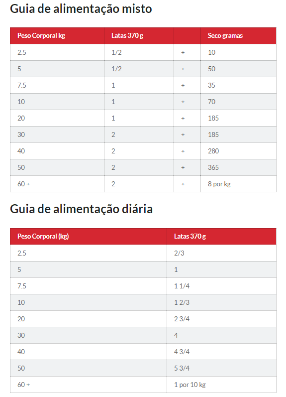 DICAS ÚTEIS ·Ajuste as quantidades diárias para manter o peso ideal. Em caso de dúvida, pergunte ao seu veterinário. ·É a primeira vez que utiliza este alimento? Misture quantidades o novo alimento com o alimento atual do seu do animal de companhia aumentando gradualmente a quantidade, durante um período de 7 dias até o alimentar unicamente com o novo alimento. ·Tenha sempre água fresca disponível! ·As necessidades nutricionais dos seus animais de companhia podem mudar à medida que os anos passam. Fale com o seu veterinário numa próxima consulta. ·Para evitar asfixia, mantenha a embalagem fora do alcance de animais de companhia e crianças.