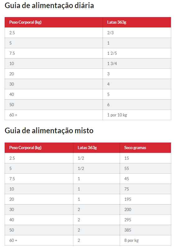 DICAS ÚTEIS ·Ajuste as quantidades diárias para manter o peso ideal. Em caso de dúvida, pergunte ao seu veterinário. ·É a primeira vez que utiliza este alimento? Misture quantidades o novo alimento com o alimento atual do seu do animal de companhia aumentando gradualmente a quantidade, durante um período de 7 dias até o alimentar unicamente com o novo alimento. ·Tenha sempre água fresca disponível! ·As necessidades nutricionais dos seus animais de companhia podem mudar à medida que os anos passam. Fale com o seu veterinário numa próxima consulta. ·Para evitar asfixia, mantenha a embalagem fora do alcance de animais de companhia e crianças.