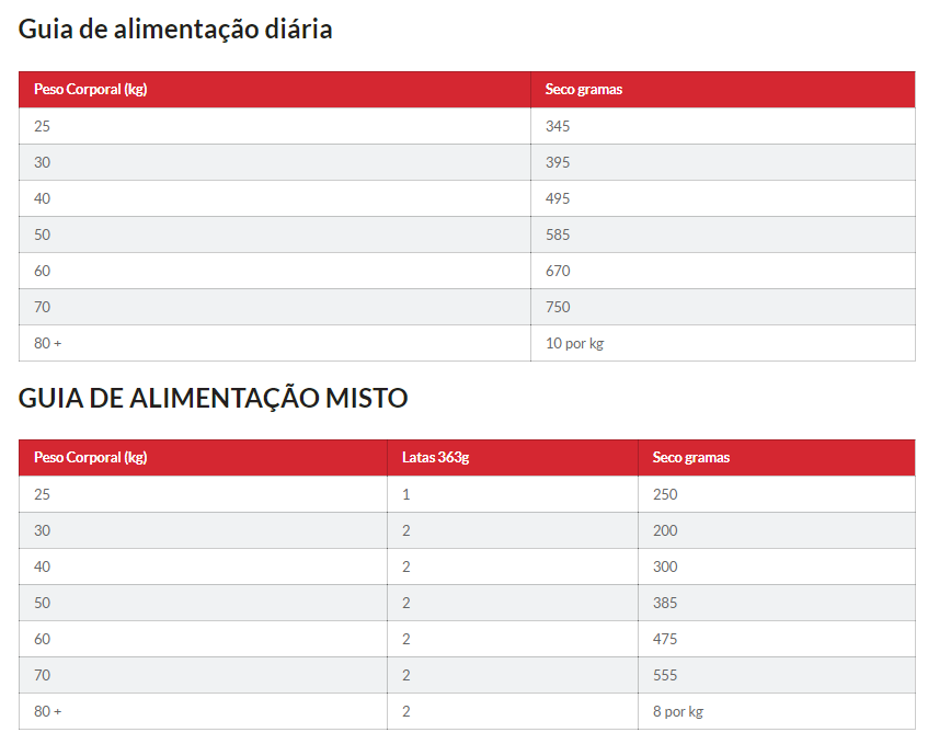 DICAS ÚTEIS ·Ajuste as quantidades diárias para manter o peso ideal. Em caso de dúvida, pergunte ao seu veterinário. ·É a primeira vez que utiliza este alimento? Misture quantidades o novo alimento com o alimento atual do seu do animal de companhia aumentando gradualmente a quantidade, durante um período de 7 dias até o alimentar unicamente com o novo alimento. ·Tenha sempre água fresca disponível! ·As necessidades nutricionais dos seus animais de companhia podem mudar à medida que os anos passam. Fale com o seu veterinário numa próxima consulta. ·Para evitar asfixia, mantenha a embalagem fora do alcance de animais de companhia e crianças.