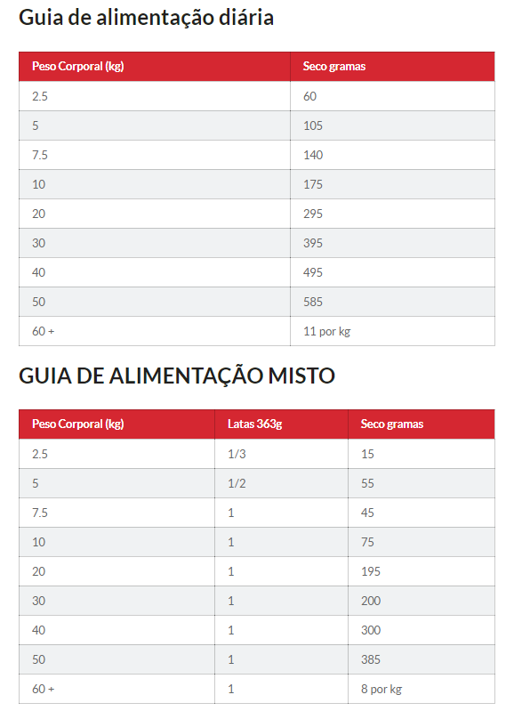 DICAS ÚTEIS ·Ajuste as quantidades diárias para manter o peso ideal. Em caso de dúvida, pergunte ao seu veterinário. ·É a primeira vez que utiliza este alimento? Misture quantidades o novo alimento com o alimento atual do seu do animal de companhia aumentando gradualmente a quantidade, durante um período de 7 dias até o alimentar unicamente com o novo alimento. ·Tenha sempre água fresca disponível! ·As necessidades nutricionais dos seus animais de companhia podem mudar à medida que os anos passam. Fale com o seu veterinário numa próxima consulta. ·Para evitar asfixia, mantenha a embalagem fora do alcance de animais de companhia e crianças.