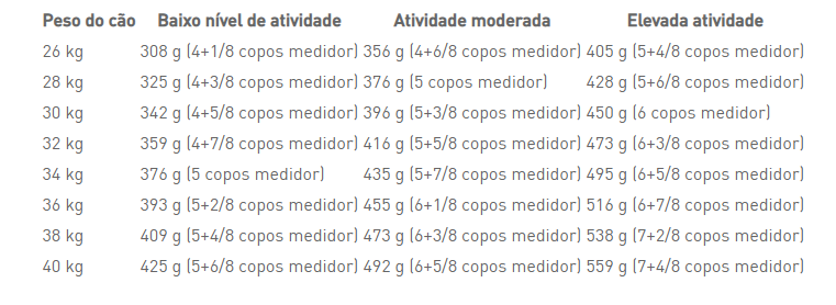Proteínas de aves desidratadas, arroz, trigo, milho, glúten de milho, isolado de proteína vegetal*, gorduras animais, hidrolisado de proteínas animais, fibras vegetais, polpa de beterraba, leveduras e produtos semelhantes, óleo de peixe, óleo de soja, sais minerais, tegumento e sementes de psyllium, fruto-oligossacarídeos, hidrolisado de crustáceos (fonte de glucosamina), óleo de borragem (0,1%), extrato de flor de tagete (fonte de luteína), hidrolisado de cartilagens (fonte de condroitina). Aditivos (por kg): Aditivos nutritivos: Vitamina A: 27.000UI, Vitamina D3: 800UI, E1 (Ferro): 68mg, E2 (Iodo): 3,9mg, E4 (Cobre): 4mg, E5 (Manganês): 41mg, E6 (Zinco): 135mg, E8 (Selénio): 0,21mg - Aditivos tecnológicos: Clinoptilolite de origem sedimentar: 10g - Aditivos sensoriais: Extrato de chá (fonte de polifenóis): 150mg - Conservantes - Antioxidantes. Constituintes analíticos: Proteína bruta: 30,0% - Matéria gorda bruta: 13,0% - Cinza bruta: 6,5% - Fibra bruta: 3,5% - EPA/DHA: 4g/kg.