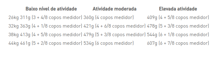 Milho, proteína de carne de aves desidratada, trigo, gorduras de origem animal, fibras vegetais, isolado de proteína vegetal*, farinha de milho, arroz, proteínas hidrolisadas de origem animal, glúten de milho, polpa de beterraba, óleo de peixe, leveduras ou partes das mesmas, sais minerais, óleo de soja, colagénio hidrolisado (0,84%), extrato de flôr de tagete (fonte de luteína), cartilagem hidrolisada (fonte de condroitina). Aditivos (por kg): Aditivos nutricionais: Vitamina A: 16500 UI, Vitamina D3: 1000 UI, E1 (Ferro): 42 mg, E2 (Iodo): 4,2 mg, E4 (Cobre): 13 mg, E5 (Manganésio): 55 mg, E6 (Zinco): 141 mg, E8 (Selénio): 0,08 mg. Constituintes analíticos: Proteínas: 26.0% -Gorduras: 15.0% - Sais minerais: 6.3% - Fibra bruta: 6.3%. * L.I.P.: Proteína selecionada pela sua elevadíssima digestibilidade.