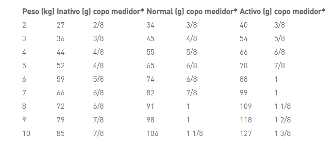 Proteína de aves desidratada, milho, isolado de proteína vegetal*, arroz, trigo, gorduras animais, fibras vegetais, glúten de milho, proteínas animais hidrolisadas, farinha de milho, sais minerais, polpa de beterraba, leveduras e partes das mesmas, óleo de soja, óleo de peixe, extrato de flor de tagete (fonte de luteína). Aditivos nutricionais: Vitamina A: 29500 UI, Vitamina D3: 800 UI, E1 (Ferro): 73 mg, E2 (Iodo): 6,1 mg, E4 (Cobre): 15 mg, E5 (Manganésio): 75 mg, E6 (Zinco): 148 mg, E8 (Selénio): 0,19 mg - Conservantes - Antioxidantes. Proteínas: 33.0% -Gorduras: 13.0% - Sais minerais: 6.6% - Fibra bruta: 5.0%. Proteína selecionada pela sua elevadíssima digestibilidade.